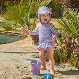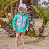 Our baby girl's swim flap hat is designed to shade your baby's head from harmful UV rays while she's playing outside. With a UPF 50+ rating, you don't need to worry about your little one getting a sunburn or harming her sensitive skin. This is the perfect baby girl swim hat for young babies that shouldn’t wear sunscreen just yet.